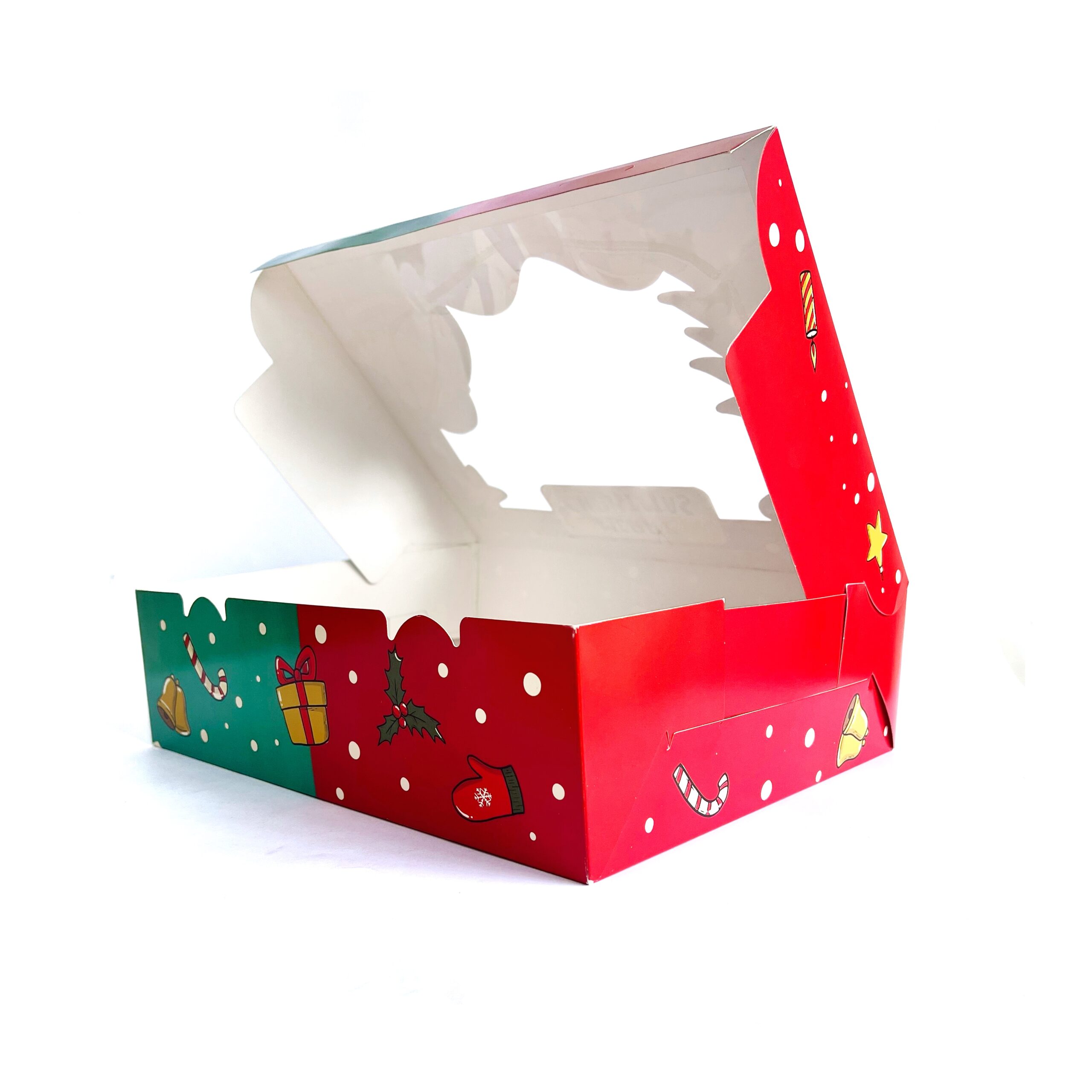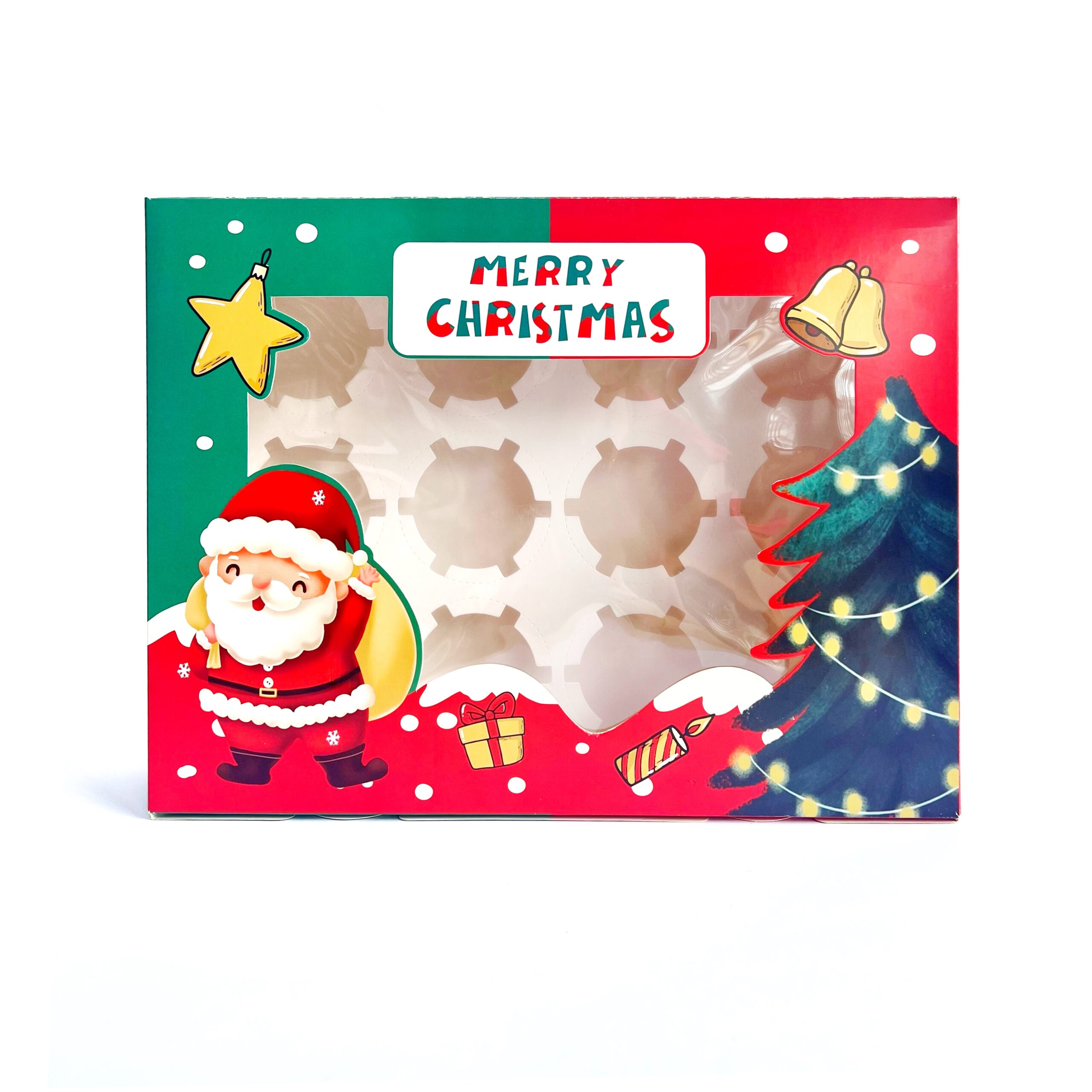 Caja cupcake 12 sin asa navidad verde/roja con visor - Imagen 3