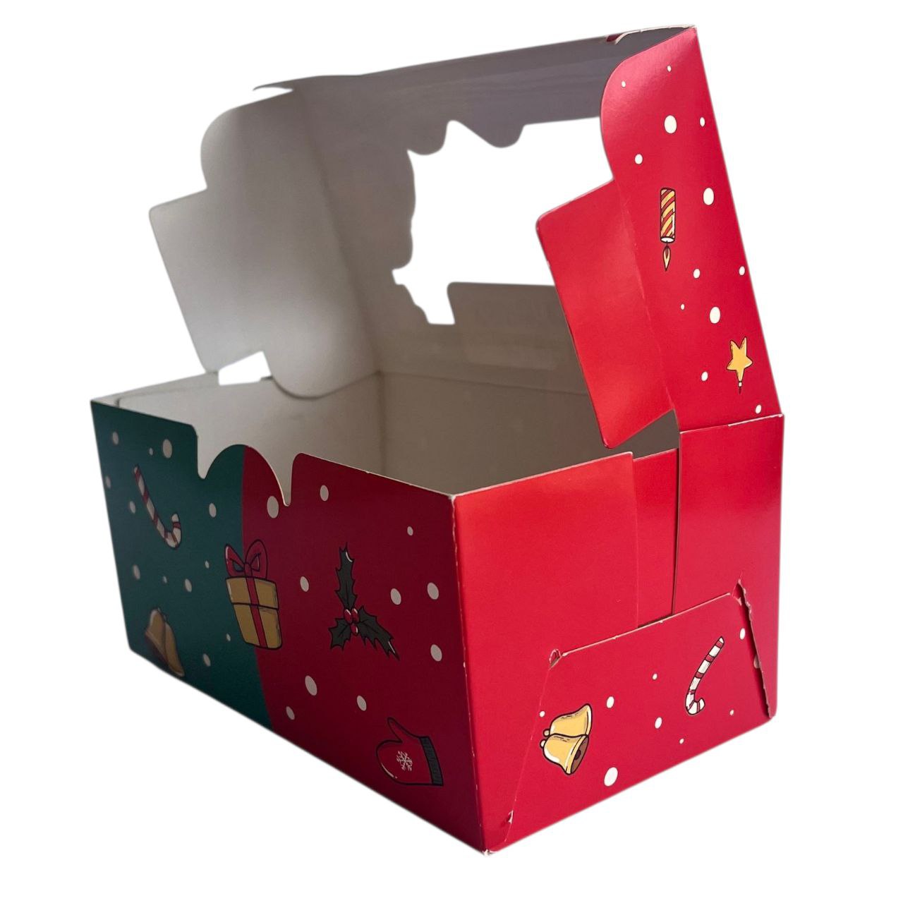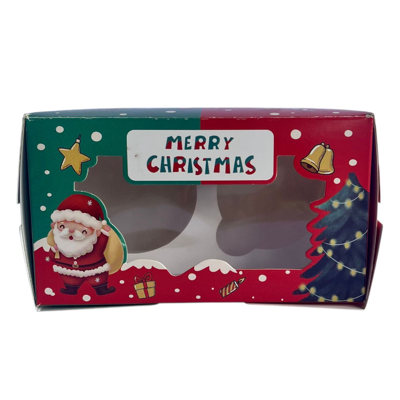 Caja cupcake 2 sin asa navidad verde/roja con visor - Imagen 3